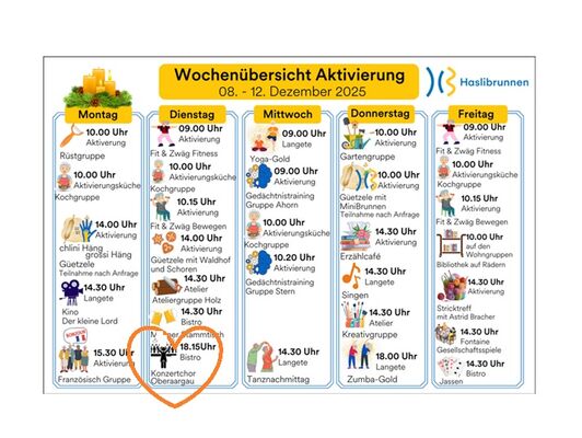 Hallelujah, Go tell it on the Montain - ein kleines Weihnachtsgeschenk Am 9. Dezember 2025 durften die rund 80 Chormitglieder des KCO die Bewohnerinnen und Bewohner des Alterszentrums Haslibrunnen in Langenthal mit weihnachtlichen Klängen beglücken. "Äs chunt guet" meinte ein Bewohner nach dem ersten Stück (Händels "Canticorum Iubilo) und am Schluss "dasch e guete Chor, dä cha no meh cho!" - Nebst den einzelnen geflossenen Tränen gibt's wohl keinen schöneren Dank für die geschenkten Känge. Wir wünschen allen schöne erholsame Festtage und alles Gute im neuen Jahr. KONZERTCHOR OBERAARGAU